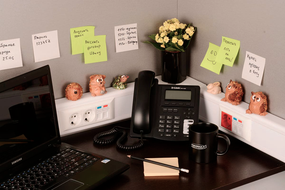 На одно рабочее место закладывается минимум 2 информационных порта, т.е. 2 слаботочных розетки — одна под телефон, а другая под компьютер. Конечно, в вашей власти менять конфигурацию как в сторону увеличения количества портов, так и его уменьшения. Однако, экономическая выгода второго варианта в перспективе оказывается незначительной, и практичность системы ставится под угрозу.