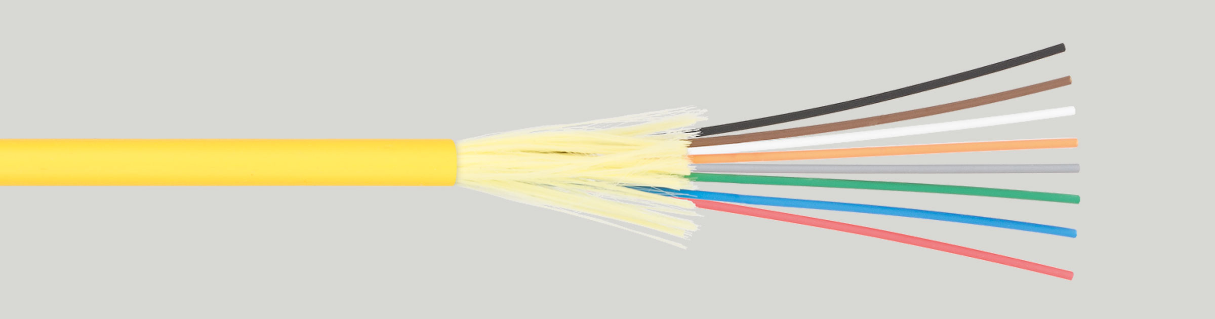 В подавляющем большинстве случаев подойдет стандартный распределительный кабель с волокнами в плотном буфере. Иногда для обеспечения большей плотности используют распределительный кабель с микромодульной конструкцией. Более того, к кабелю для внутренней прокладки предъявляются серьезные требования по пожарной безопасности, а потому он должен быть с оболочкой из поливинилхлорида, в идеале же — из не поддерживающего горение пластиката (LSZH).