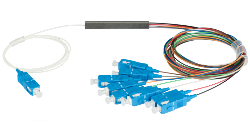 Сплиттеры в металлическом мини-корпусе за счет компактных габаритов могут быть интегрированы в соединительные кассеты, распределительные настенные коробки и т.д. Выводы обеспечены базовой защитой в виде буферного покрытия диаметром 0,9 мм.