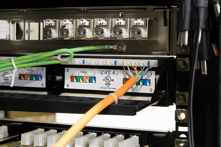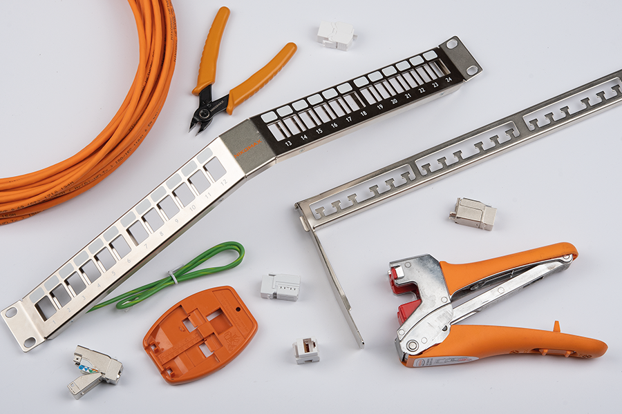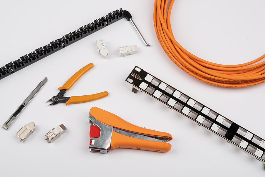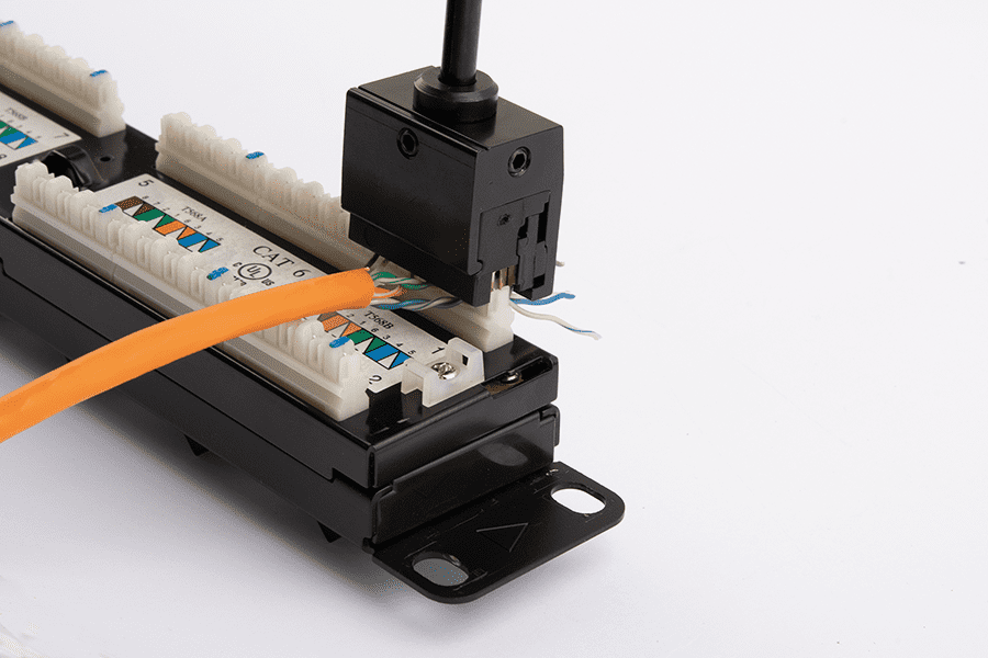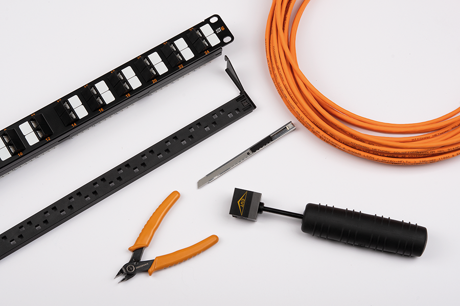 Самый ресурсозатратный - терминирование жил в IDC-контактах. Используйте инструмент NMC-315DR для одновременной заделки сразу нескольких проводов: он надежно врезает жилы и значительно ускоряет процесс. Рассредоточьте кабели по органайзеру и закрепите стяжками.
