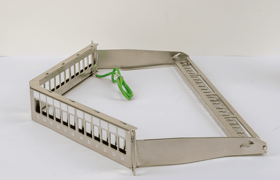 Одной из последних новинок, а по совместительству и второй угловой наборной панелью, стала NMC-RP24-BLANK-AG-1U-MT. И, если в предыдущих моделях за образование угла отвечали порты панели или же специально разработанные модули, здесь всю ответственность на себя берет корпус панели.