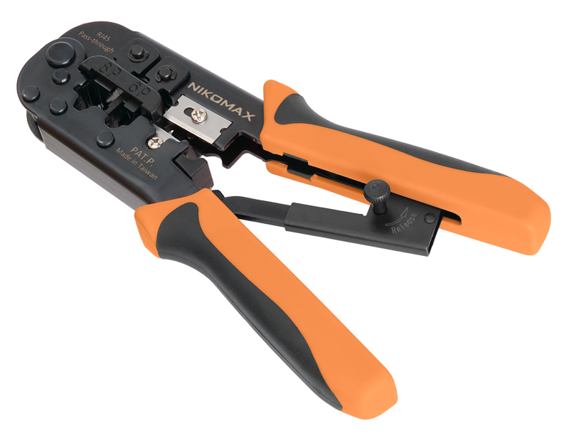 Для обжима мы рекомендуем использовать новый инструмент NMC-5684PT – устройство, специализирующееся на коннекторах данного типа. Инструмент не только качественно обожмет коннектор, но и одновременно удалит выступающие излишки проводников. Кроме того, NMC-5684PT многофункционален: поможет и кабель зачистить, и лишнее удалить (разрывную нить, к примеру). В общем, сделает всю работу!