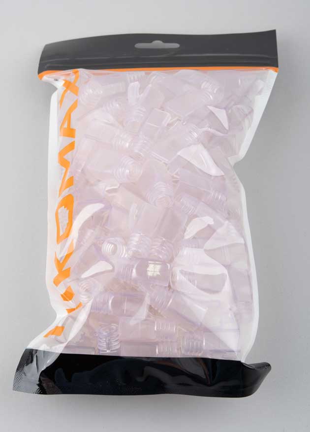 Поставляются коннекторы и защитные колпачки по 100 шт. в брендированной упаковке с информативным стикером на задней стороне.