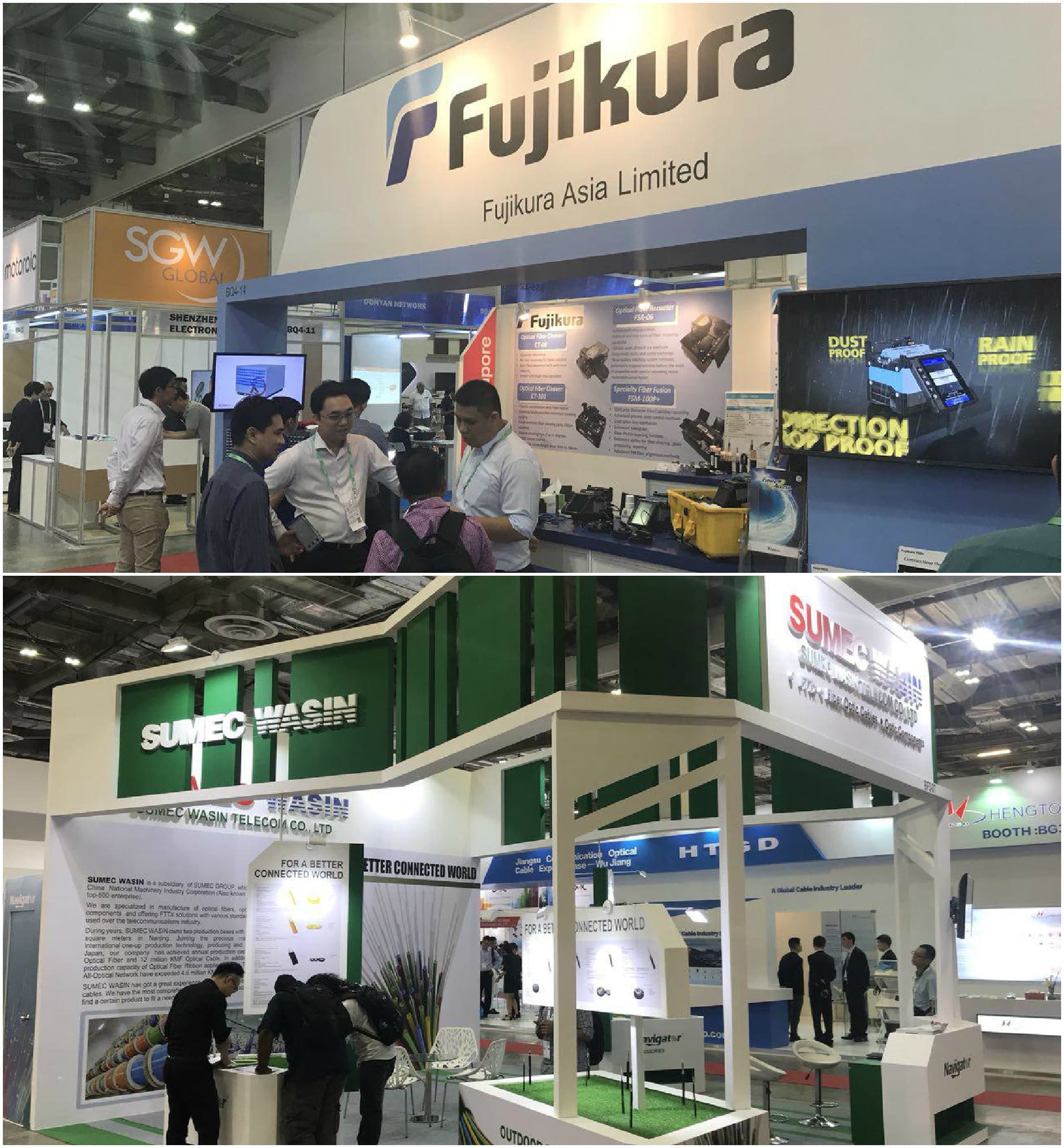 А чем же еще порадовали гостей Сингапура другие экспоненты выставки? Оптикой! Поистине, эта отрасль телекоммуникаций была самой широко представленной. Китайские и тайваньские мануфактуры разложили на своих витринах кабели, шнурки, адаптеры всех видов, типов, цветов и мастей, представив потенциальным дистрибуторам ассортимент во всей красе. Предложения по меди значительно уступали в количестве своим более скоростным конкурентам. Преимущественно, свои мощности рекламировали сами заводы или их агенты/представители.