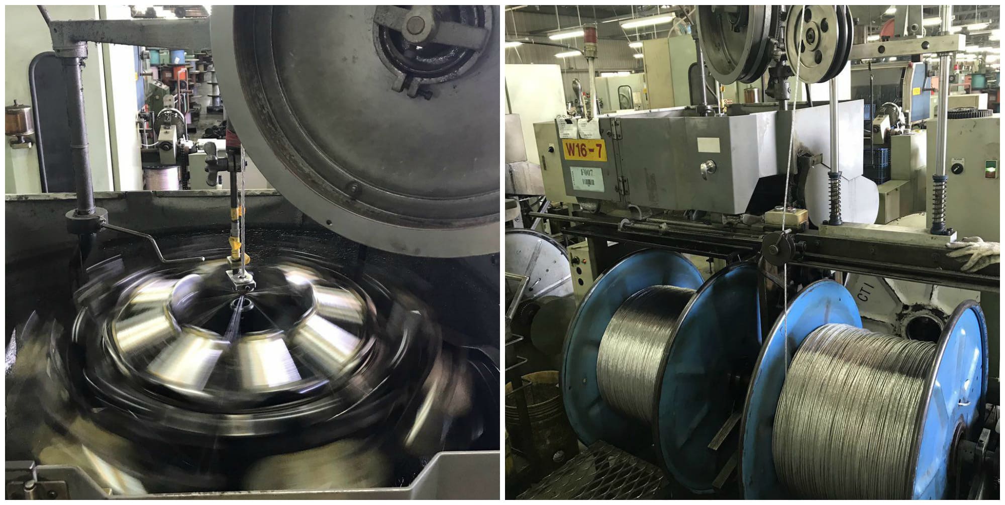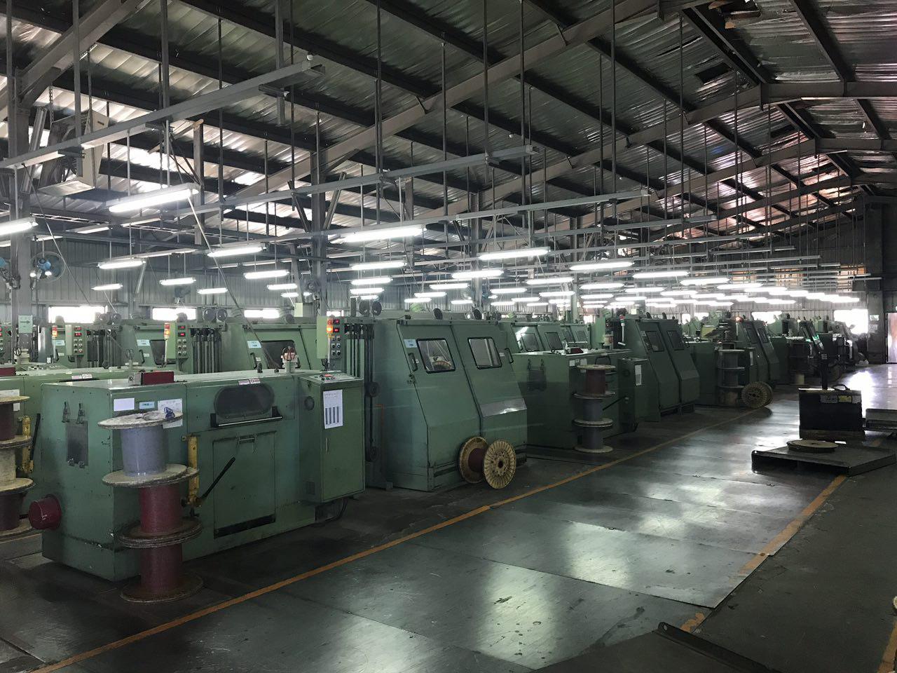 Завод А реализует все этапы производства кабеля, превращая своими мощными машинами огромные мотки меди в готовые бухты. Все начинается с вытягивания медной жилы (copper drawing), в процессе чего толстая проволока утончается до проводника размером 0,50-0,55 мм в зависимости от конструкции и категории кабеля. Будущий многожильный (или «патчкордовый») кабель ждет следующий этап (conductor bunching), на котором 7 проводников объединяются в один пучок.
