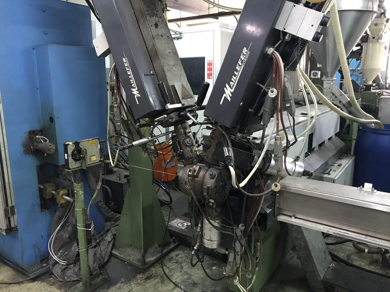 Затем и стандартный solid, и «патчкордовый» stranded проводники отправляются на процедуру нанесения изоляции (insulation extrusion). Уникальность используемого на заводе оборудования в том, что оно позволяет объединить два процесса. Сначала изоляция наносится на проводник, который затем наматывается на катушку, а следом машина берет изолированные белый и цветной проводники с катушек, свивает воедино и наматывает готовой парой (twist pairing).