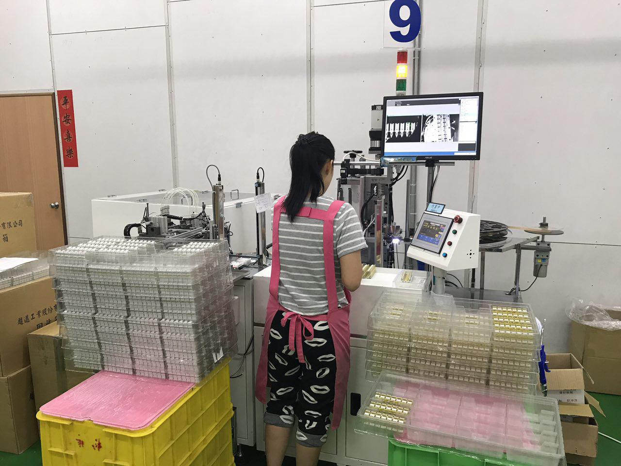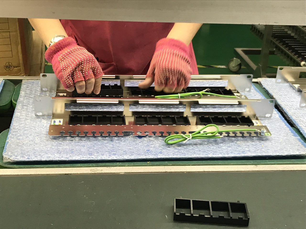 На Заводе В есть множество линий. Часть из них полностью автоматизированы, например, пайка печатных плат или вставка контактов. Некоторые линии – преимущественно сборка и упаковка – предполагают большое участие ручного труда, а на этапе контроля точность машины и неравнодушие человека объединяются для 100% гарантии качества. Ни один потенциальный недостаток коммутационного модуля не скроется от контролера «3-в-1»: этот аппарат проверяет целостность компонента, соблюдение всех допусков и даже правильность расположения наклейки. Вероятность того, что сначала человеческое око пропустило какую-то проблему, а следом сбой дала автоматика, равен нулю. Именно поэтому коммутационные модули NIKOMAX постоянно участвуют в проектах с 25-летней гарантией – они просто не бывают бракованными.