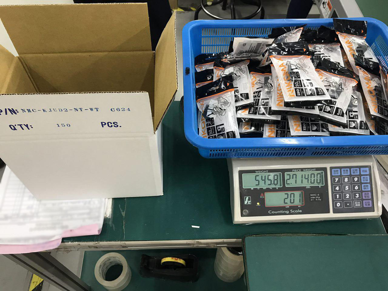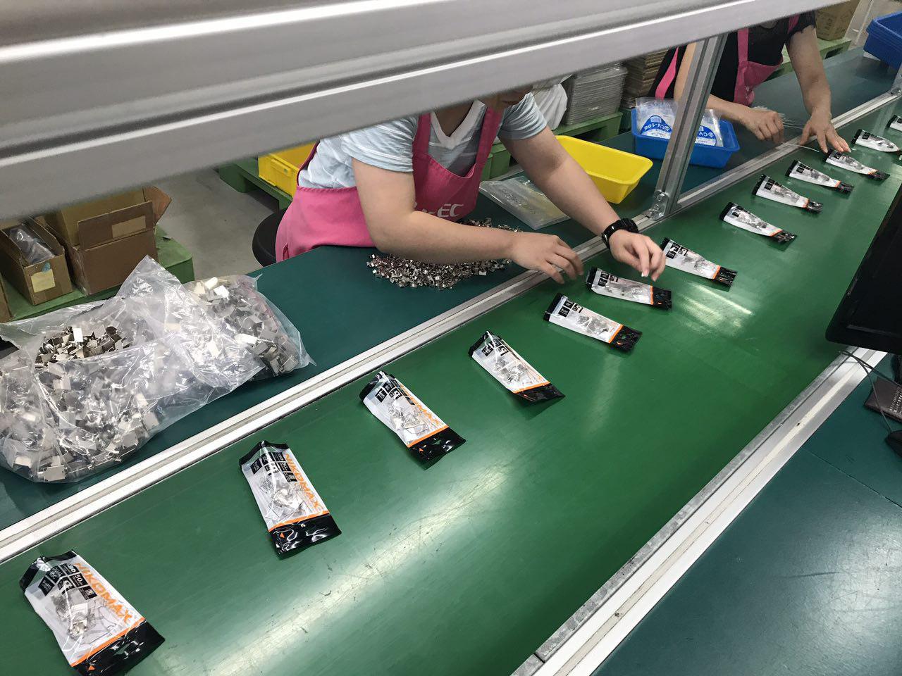 Мне удалось с замиранием сердца понаблюдать за несколькими процессами с участием наших компонентов. Это готовится очередная партия для России. Вот собираются патч-панели, а с упаковочного конвейера сходят модули и розетки. Готовые пакетики кладутся в транспортные коробки по 150 штук. Я задала вопрос – а как отсчитываются верные количества, как фасовщики достигают точности? Все просто – соответствующий 150 штукам вес показывает прибор, чья погрешность меньше, чем вес одного пакетика. Поэтому, ни 149, ни 151 штук в коробке оказаться не может.