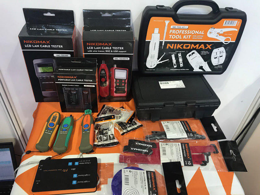 Сразу после знакомства с демо-стойкой внимание гостей устремлялось на столик с тестерами, инструментами и аксессуарами. Тут тоже было чем полюбоваться! Новые кабельные тестеры NMC-TED300 и NMC-TED400TR, появившиеся зимой в продаже на российский рынок, для Сингапура «прозвучали» впервые и поступят на локальный склад в августе. Не желающие ждать так долго «охотники за новыми технологиями» из Филиппин готовы были выкупить все демо-образцы подчистую -))