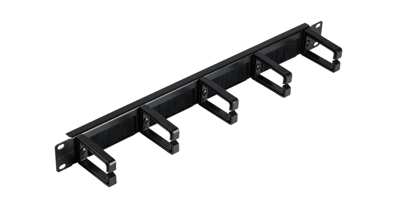Данный тип панелей в основном предназначен для скрытия неиспользованного пространства между коммуникационным оборудованием. Появление панели-заглушки с щеточным вводом расширило функционал, позволив выводить шнуры внутрь шкафов и стоек.