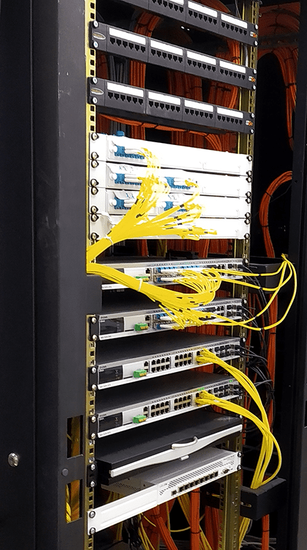 Следующее затруднение было вызвано архитектурной особенностью здания. В процессе реализации проекта партнеру пришлось отступить от изначального плана и экстренно искать выход из сложившейся ситуации, так как вследствие работы строителей возможность проведения кабеля в одну из восьми серверных комнат была утрачена. Однако благодаря багажу знаний и практическому опыту, ООО «Велес» удалось успешно протянуть сети к иной серверной.
