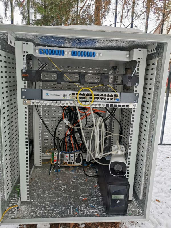 Кроме того, было установлено 4 внутренних телекоммуникационных шкафа TLK по 42 юнита серии TFE (TFE-428010-PPPP-BK) и климатический шкаф в 15U серии TWK (TWK-156561-M-GY). Все шкафы были обвиты оптоволоконной сетью с оптическими модулями форм-фактора SFP+ от GIGALINK – GL-OT-ST12LC1-1270-1330 (модель соответствует требованиям стандарта IEEE 802.3ae и является идеальным решением для передачи данных по сетям 10GbE).