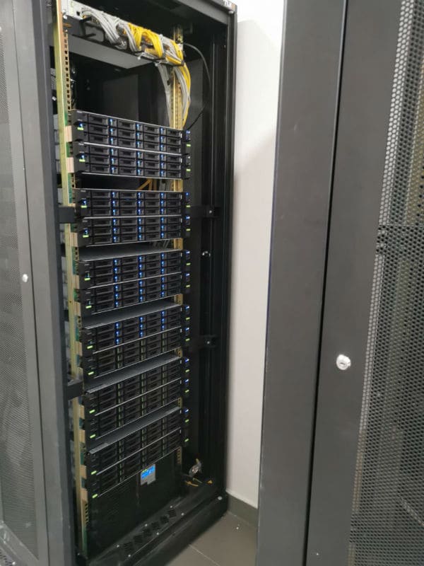 Обратимся к установленной продукции QSAN. Сперва в серверном помещении разместили три устройства NAS XN8012R-EU с 12 жесткими дисками емкостью 10 TB. В ходе работы было решено увеличить количество СХД на 20 единиц. Итогом проекта стала установка 23 сетевых хранилищ данных QSAN XN8012R-EU с емкостью в 2,7 Петабайт и с возможным расширением до 50 СХД с емкостью в 6 Петабайт.