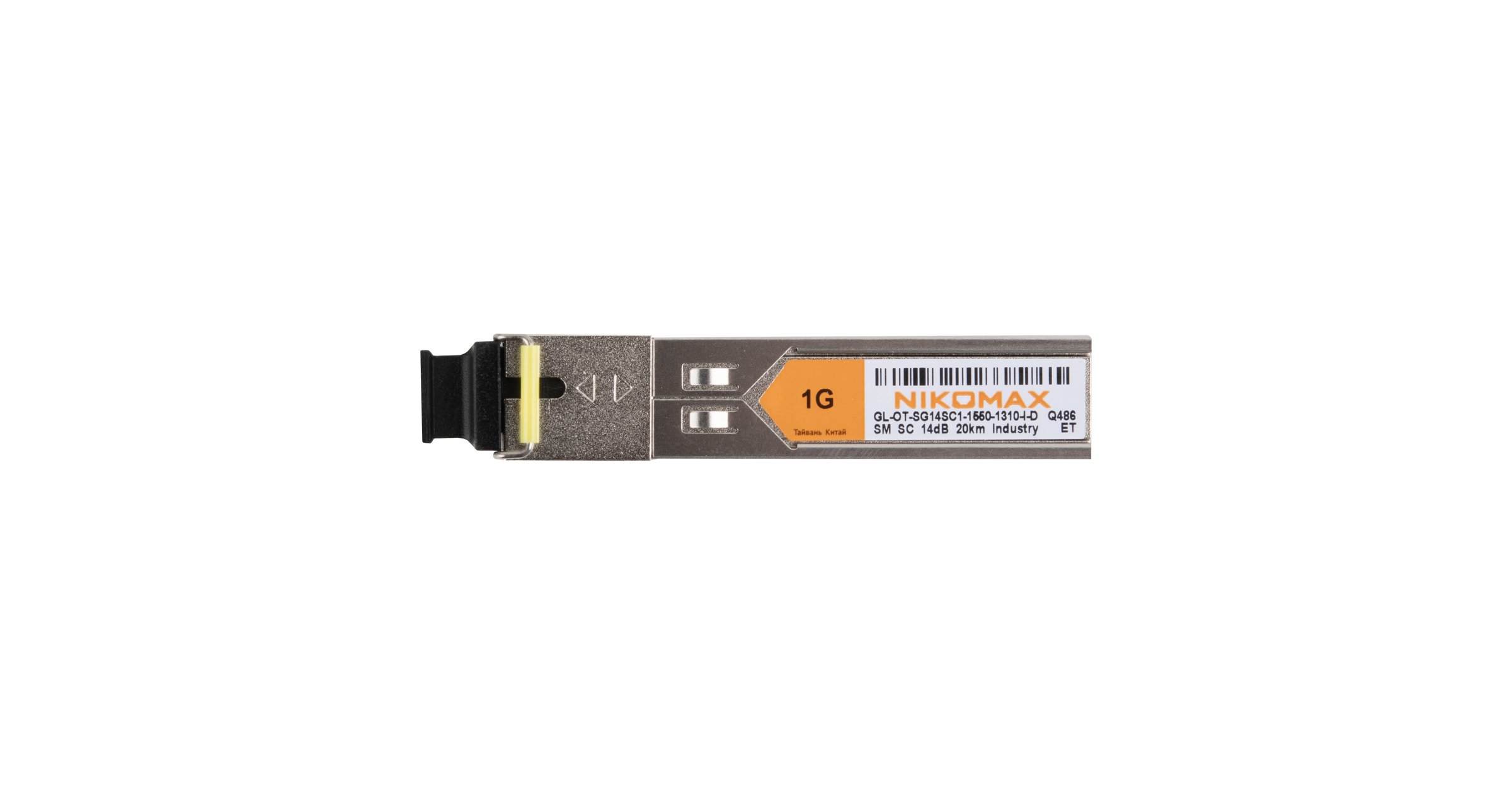 Модуль NIKOMAX SFP, 1.25 Гбит/с, WDM, 1 ОВ, SM, 1xSC, Tx:1550/Rx:1310 нм, DDM, 14 дБ (до 20 км), -40 +85 °С