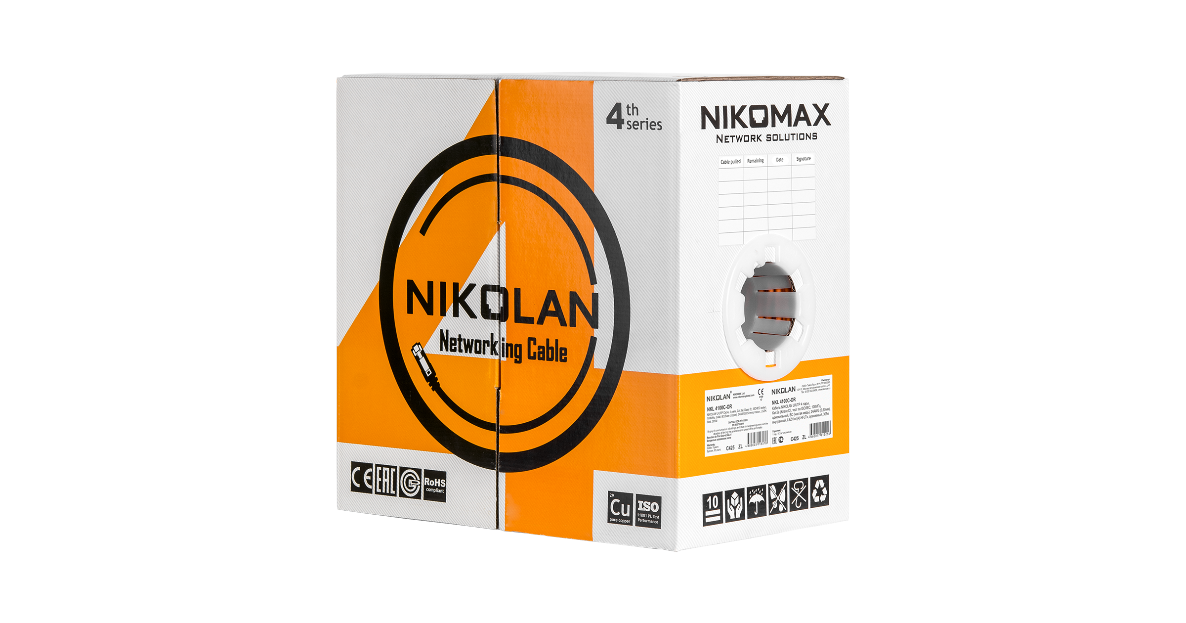Кабель NIKOLAN F/UTP, 4 пары, кат.5e, 24 AWG,внешний, PE, 305м