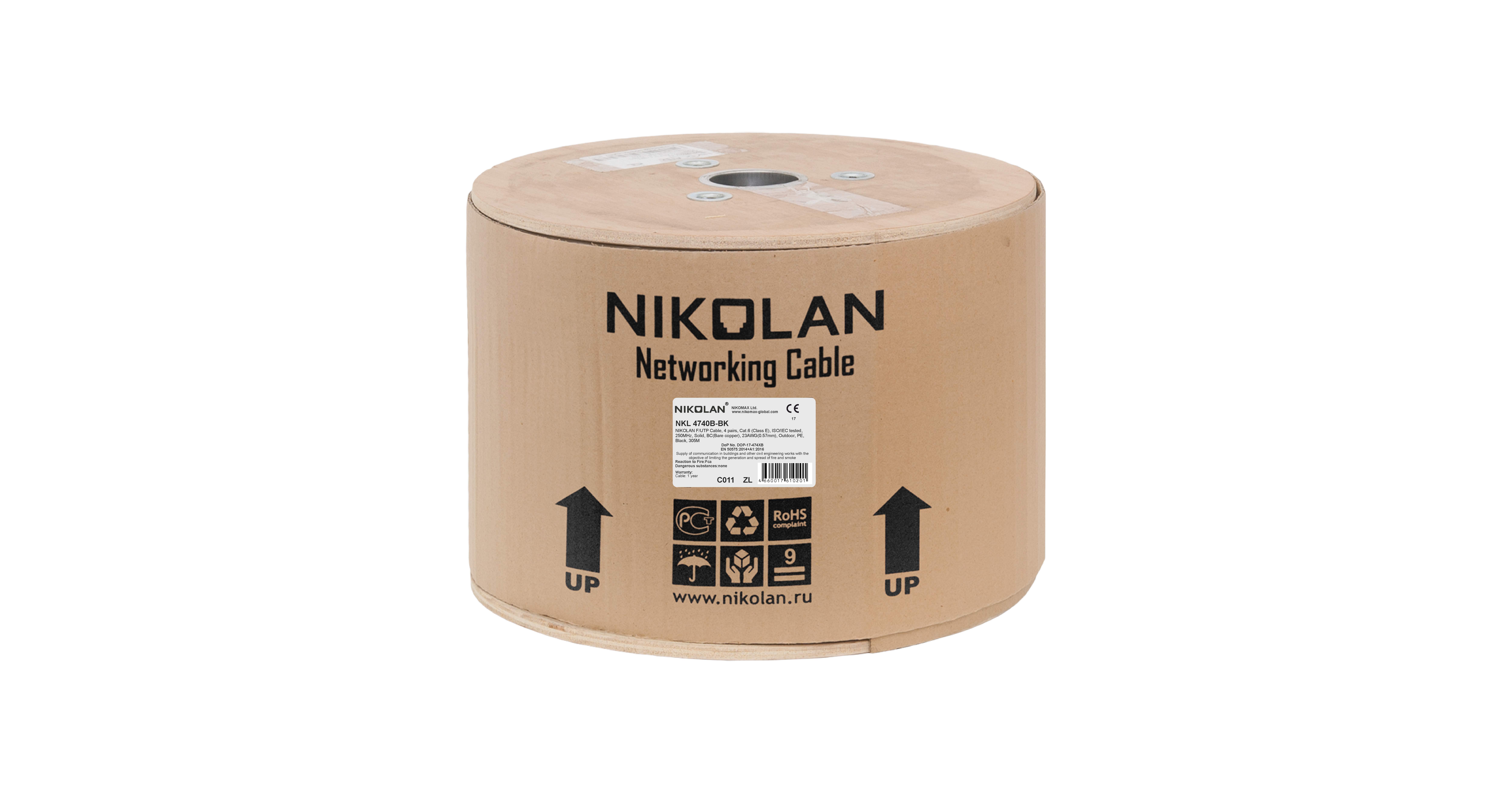 Кабель NIKOLAN F/UTP, 4 пары, кат.6, 23 AWG, внешний, PE, 305м