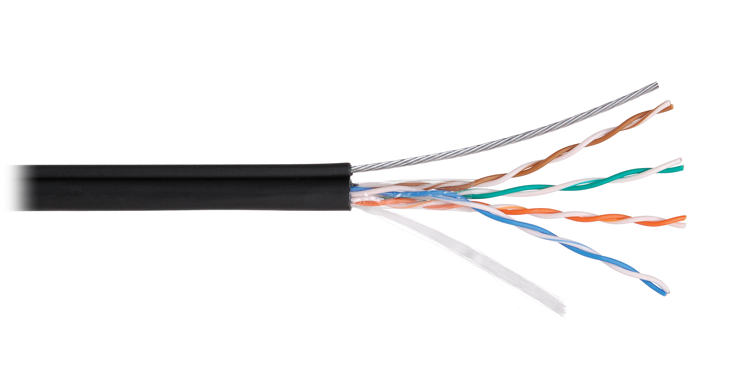 Кабель NIKOLAN U/UTP, 4 пары, кат.5e, 24 AWG, внешний с тросом, PE, 500м
