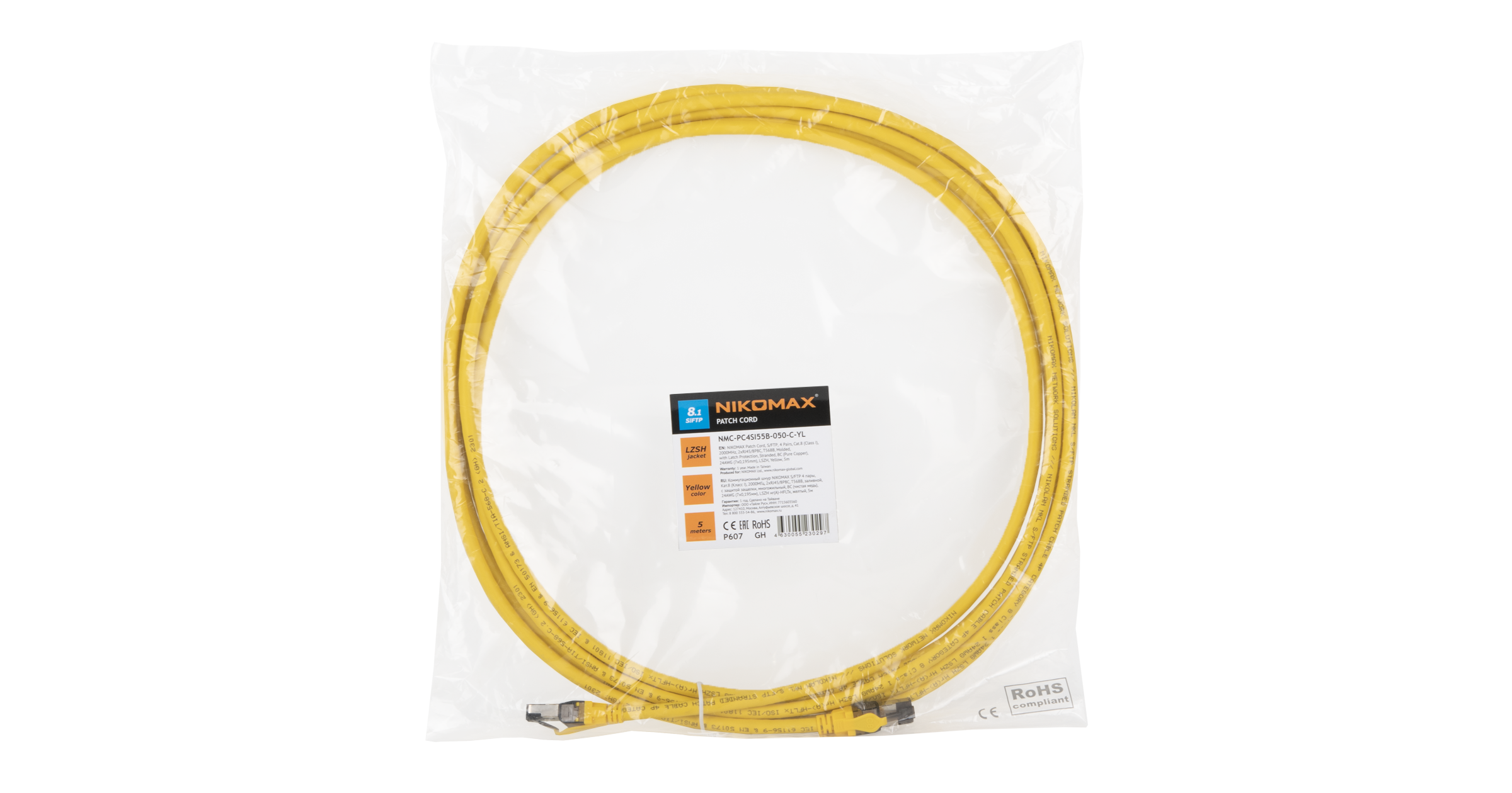 Коммутационный шнур экранированный, категории 8, LSZH, 1-5 м