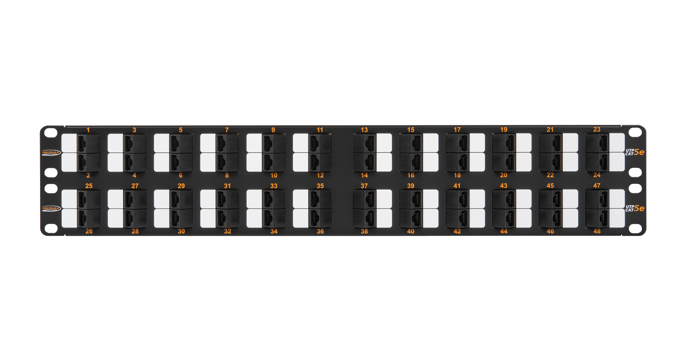 Неэкранированная патч-панель с угловыми портами, 48 портов, 19", 2U, категория 5e