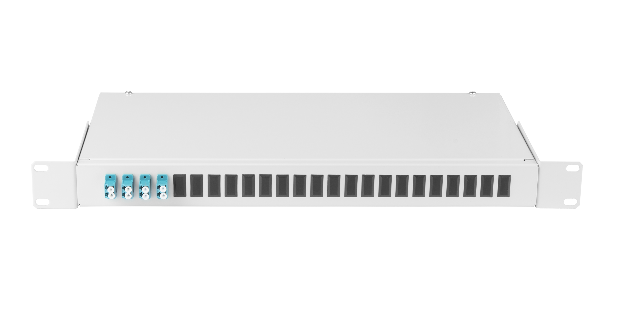 Оптический кросс 19", 1U, укомплектованный на 8 портов LC/UPC (4 двойных LC/UPC адаптера)
