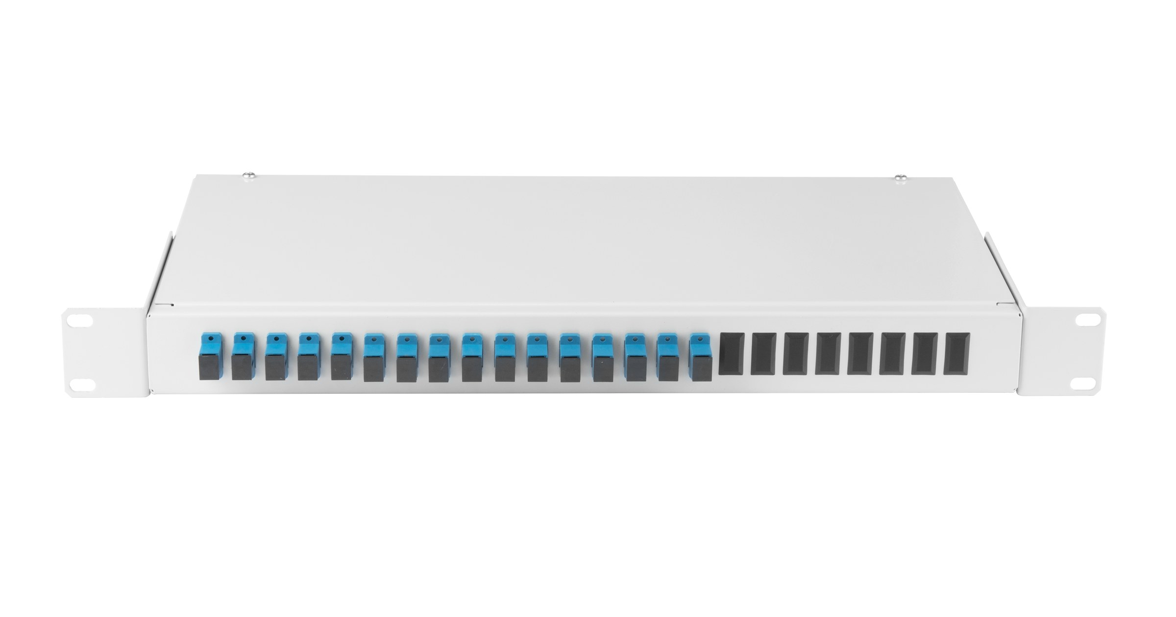 Оптический кросс 19", 1U, укомплектованный на 16 портов SC/UPC (16 одинарных SC/UPC адаптеров)