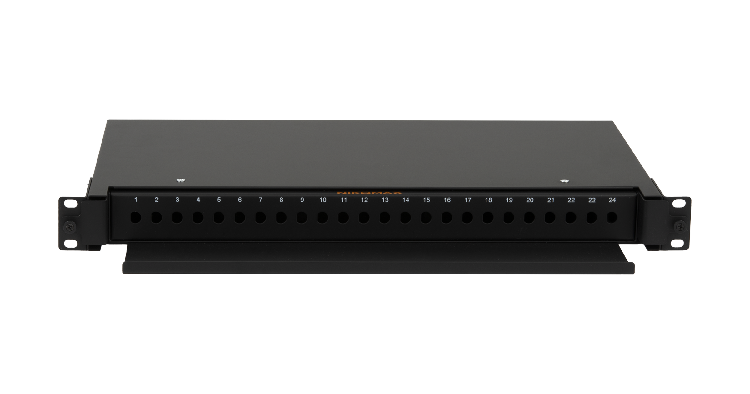 Оптический кросс 19", 1U, до 24 FC/ST портов, выдвижной, черный, неукомплектованный
