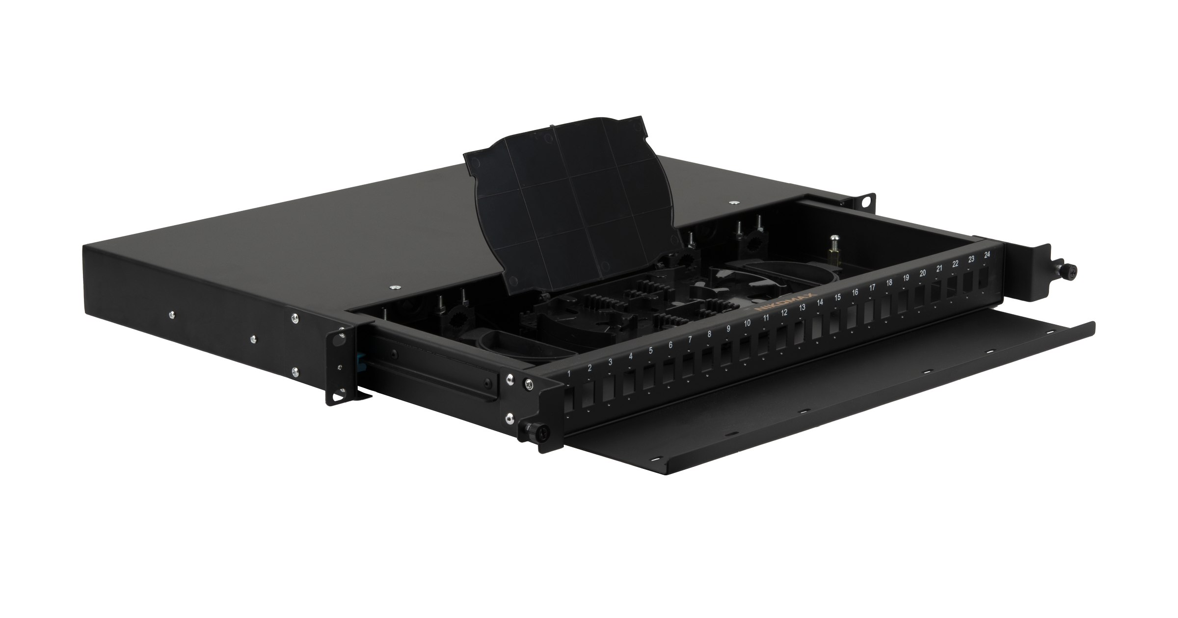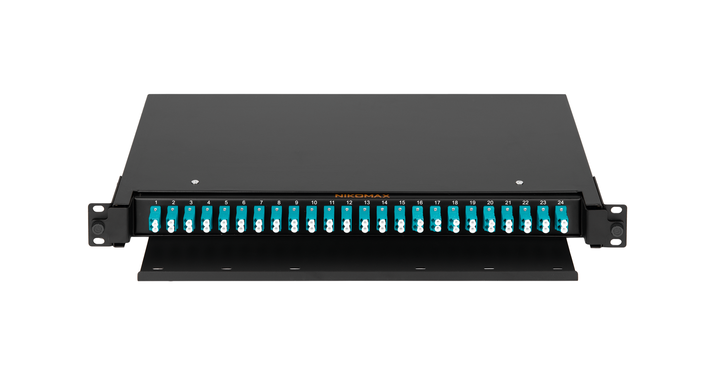 Кросс 19", Premium Line, 1U, укомплектованный на 48 портов LC/UPC, MM 50/125 OM3, выдвижной, черный