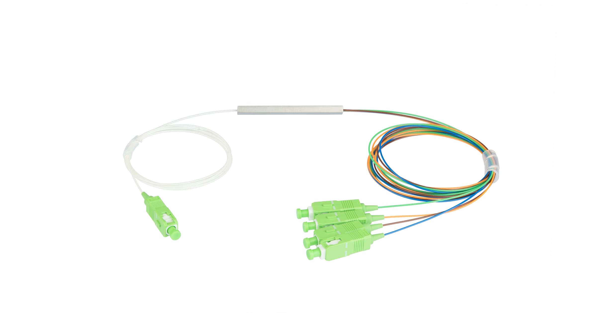 Сплиттер планарный 1x4, одномодовый, G.657.A1, SC/APC, миникорпус, 0.9 мм