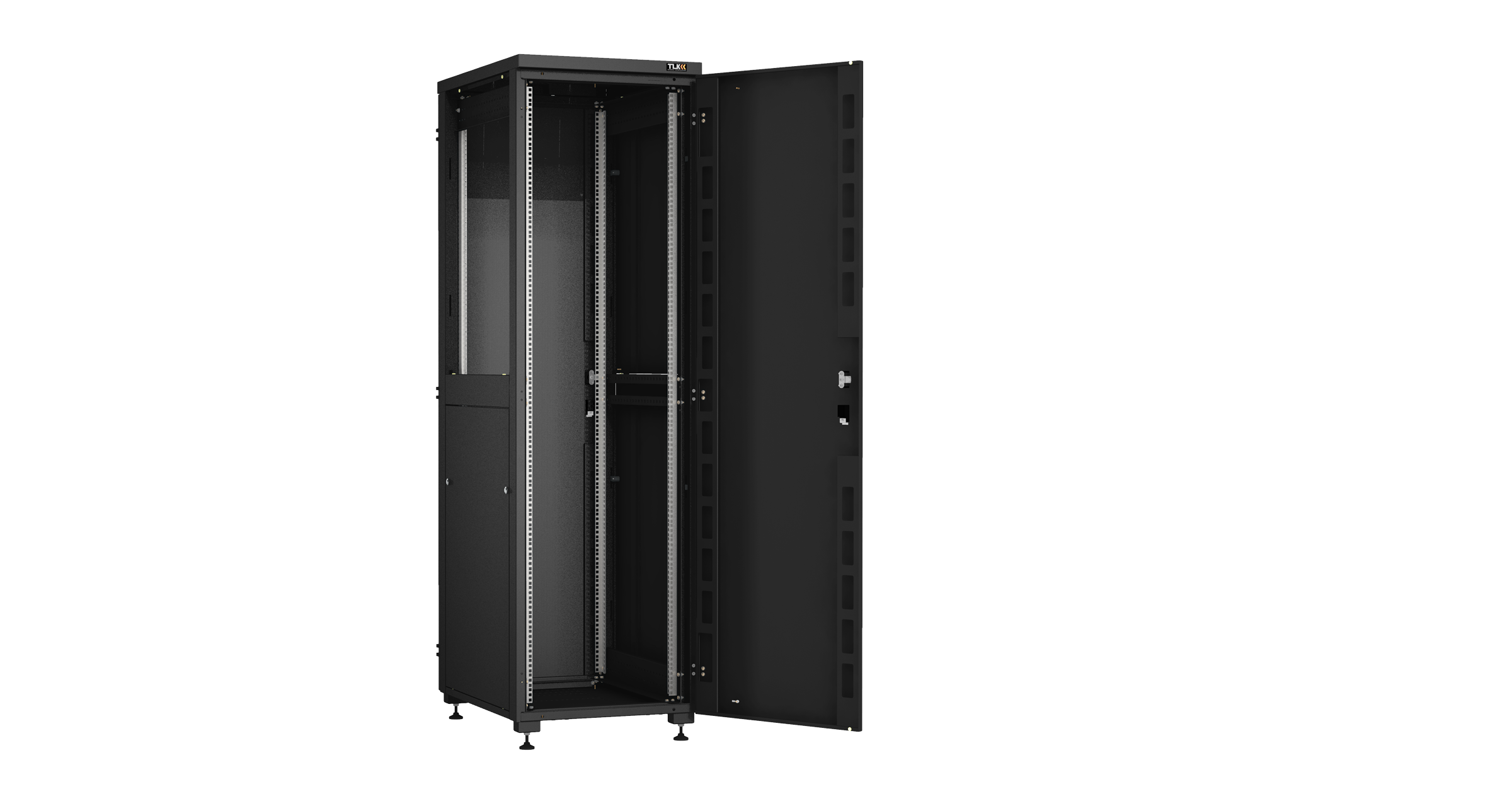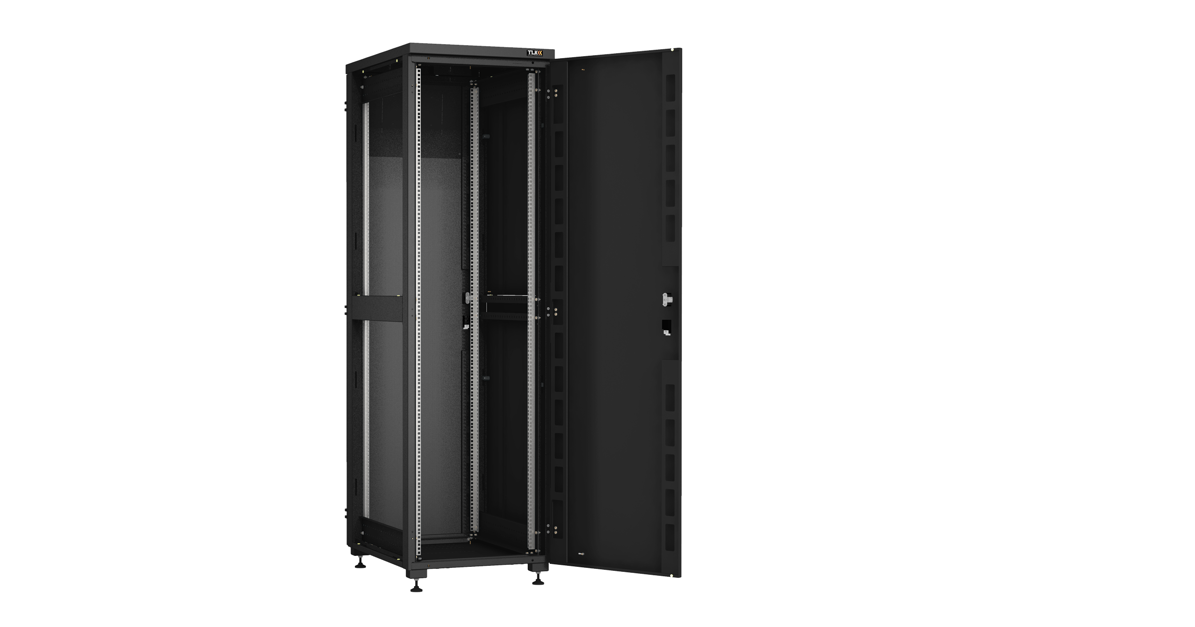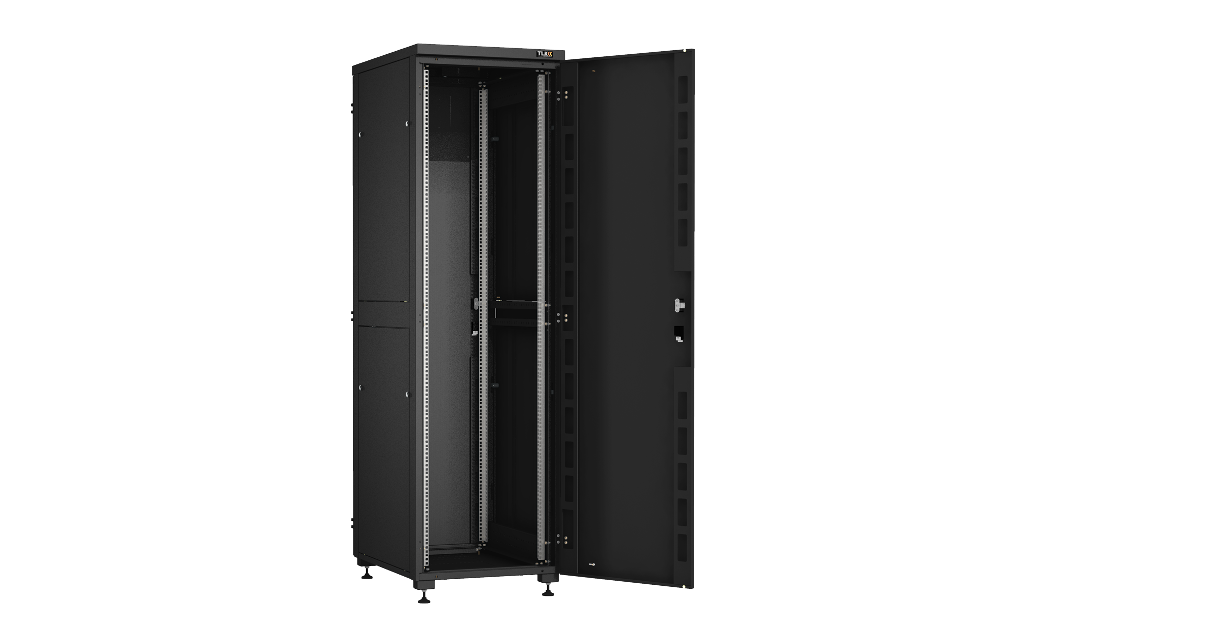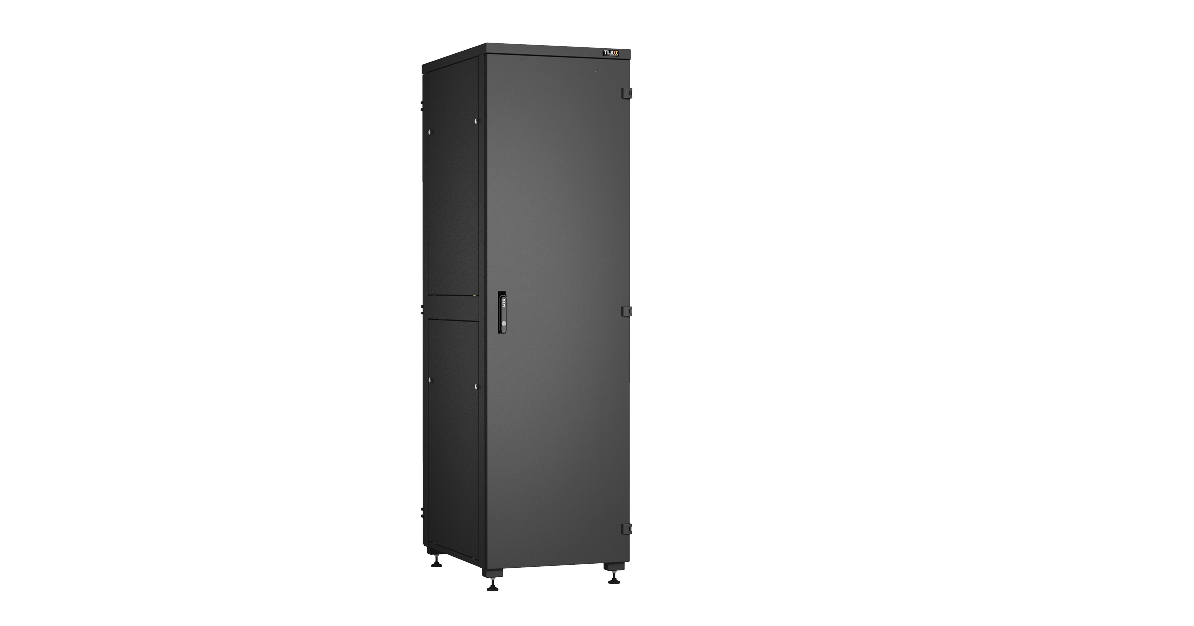 42U, Ш600хГ800, металлическая дверь, двухуровневые металлические стенки, металлическая дверь, черный