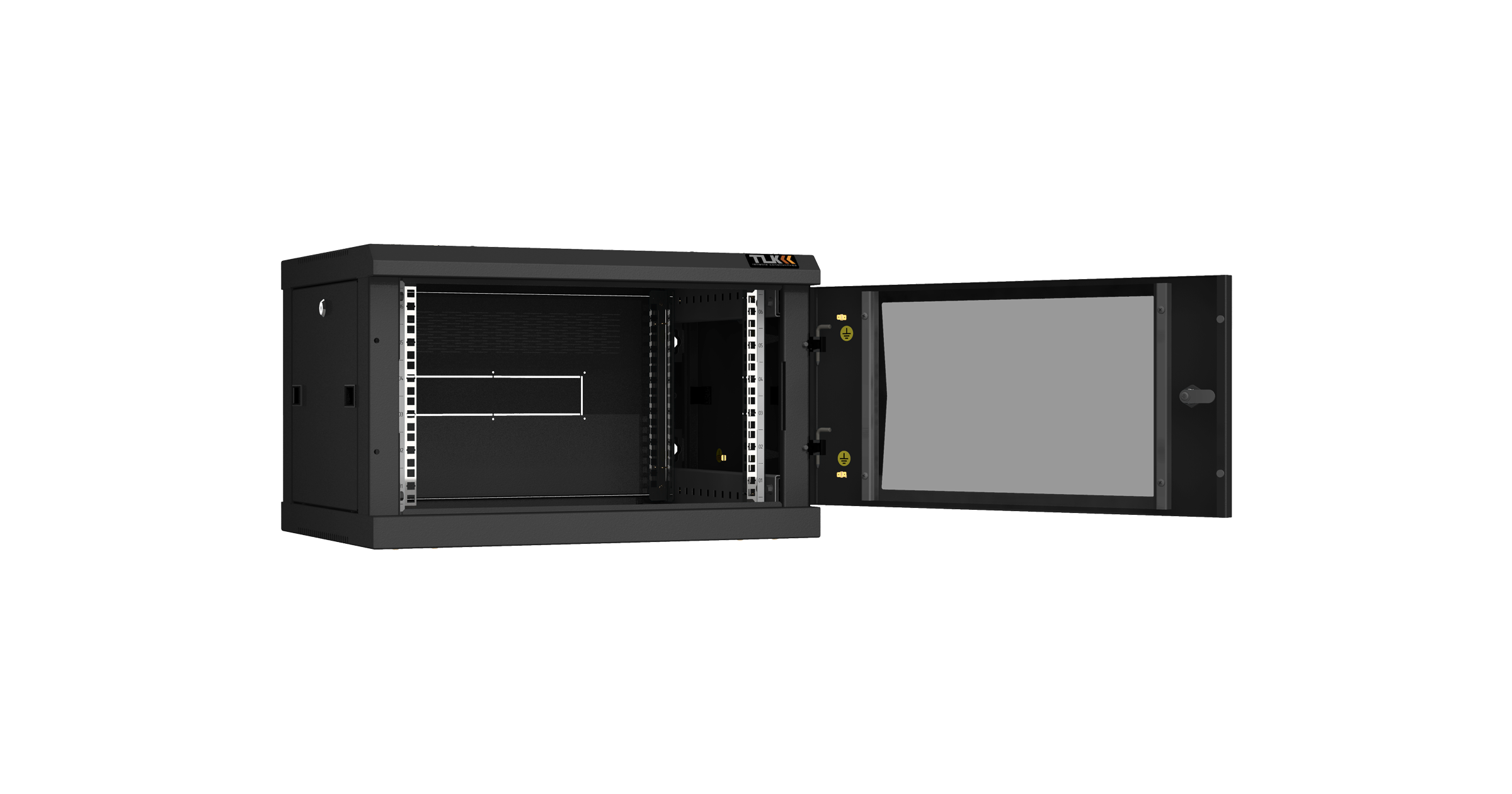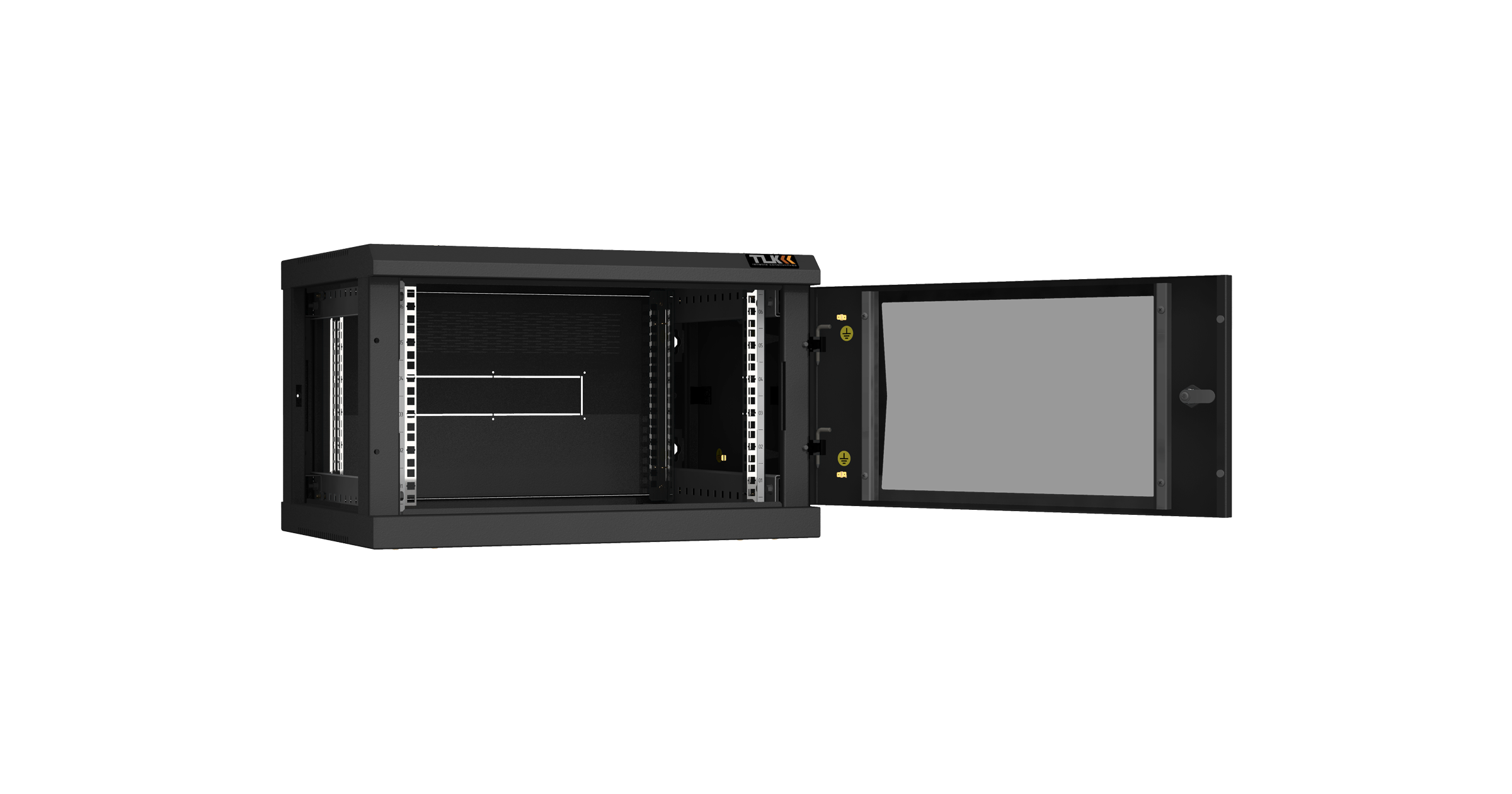 6U, Ш600хГ450, стеклянная дверь, цельнометаллические стенки, черный