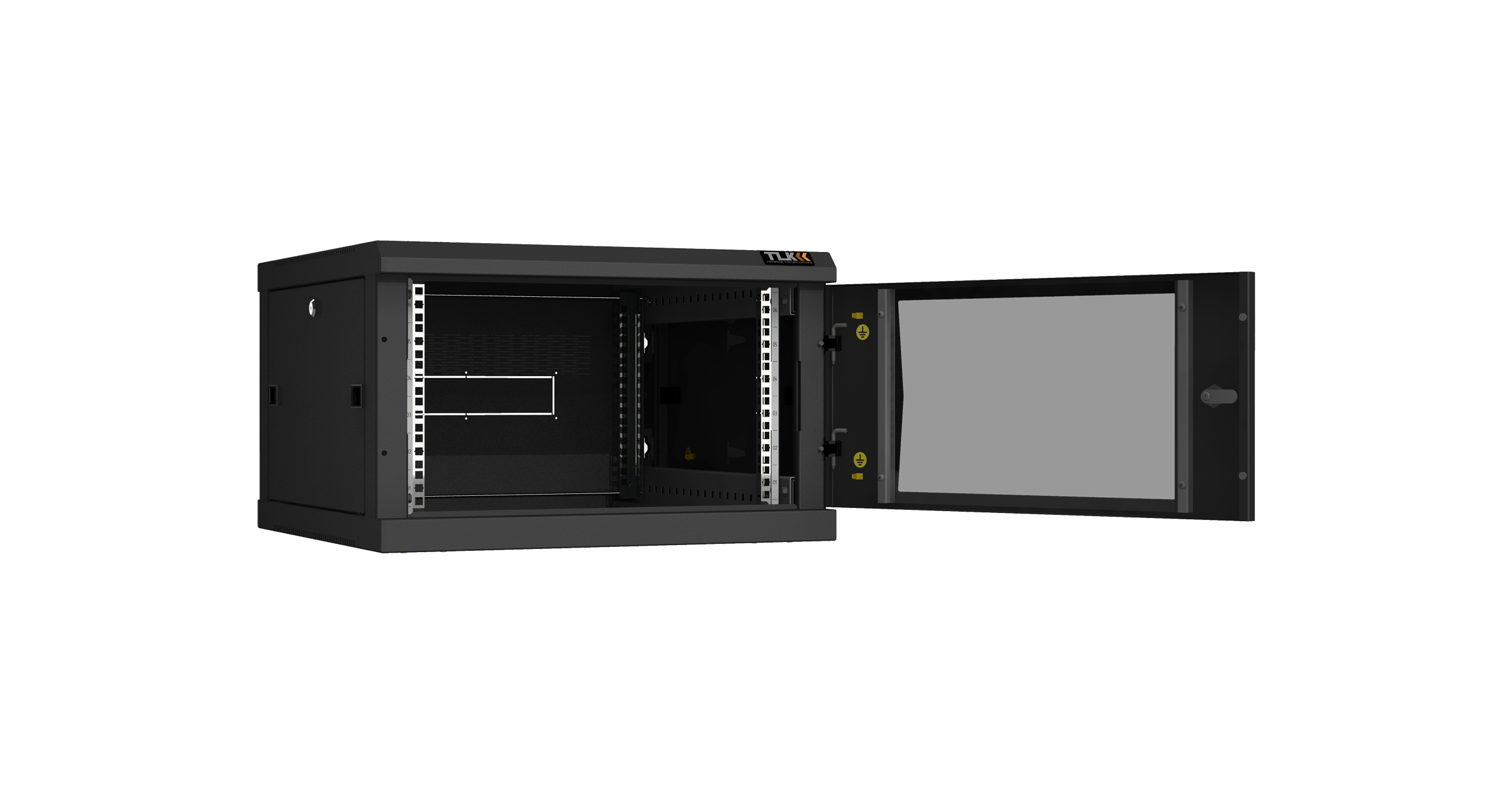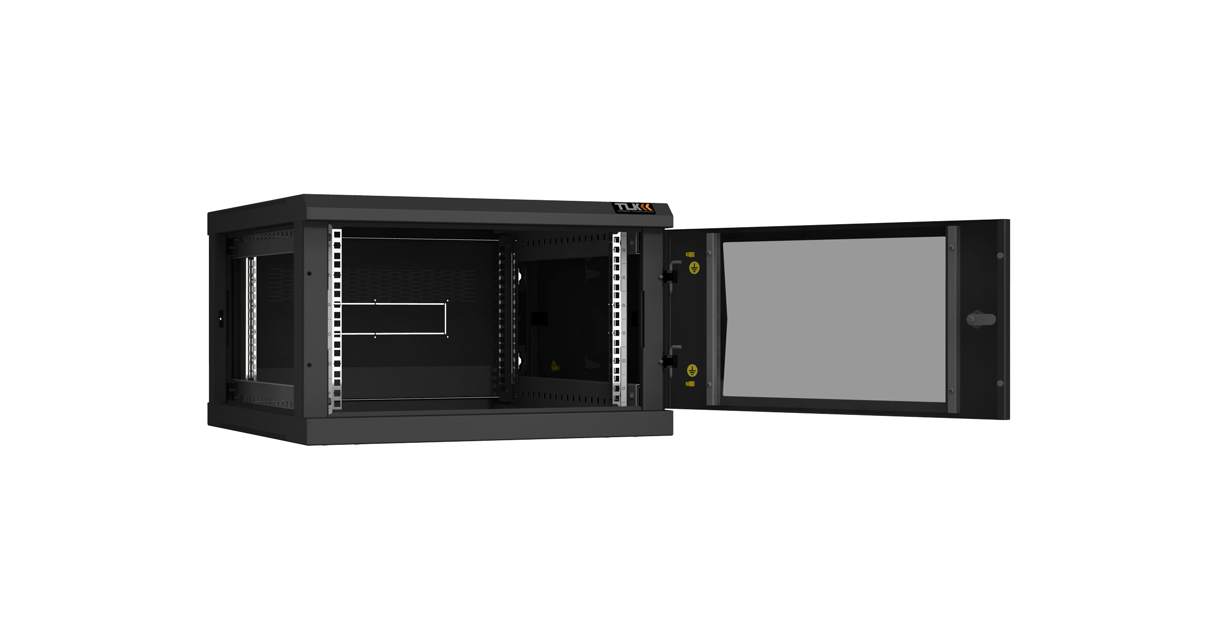 6U, Ш600хГ600, стеклянная дверь, цельнометаллические стенки, черный