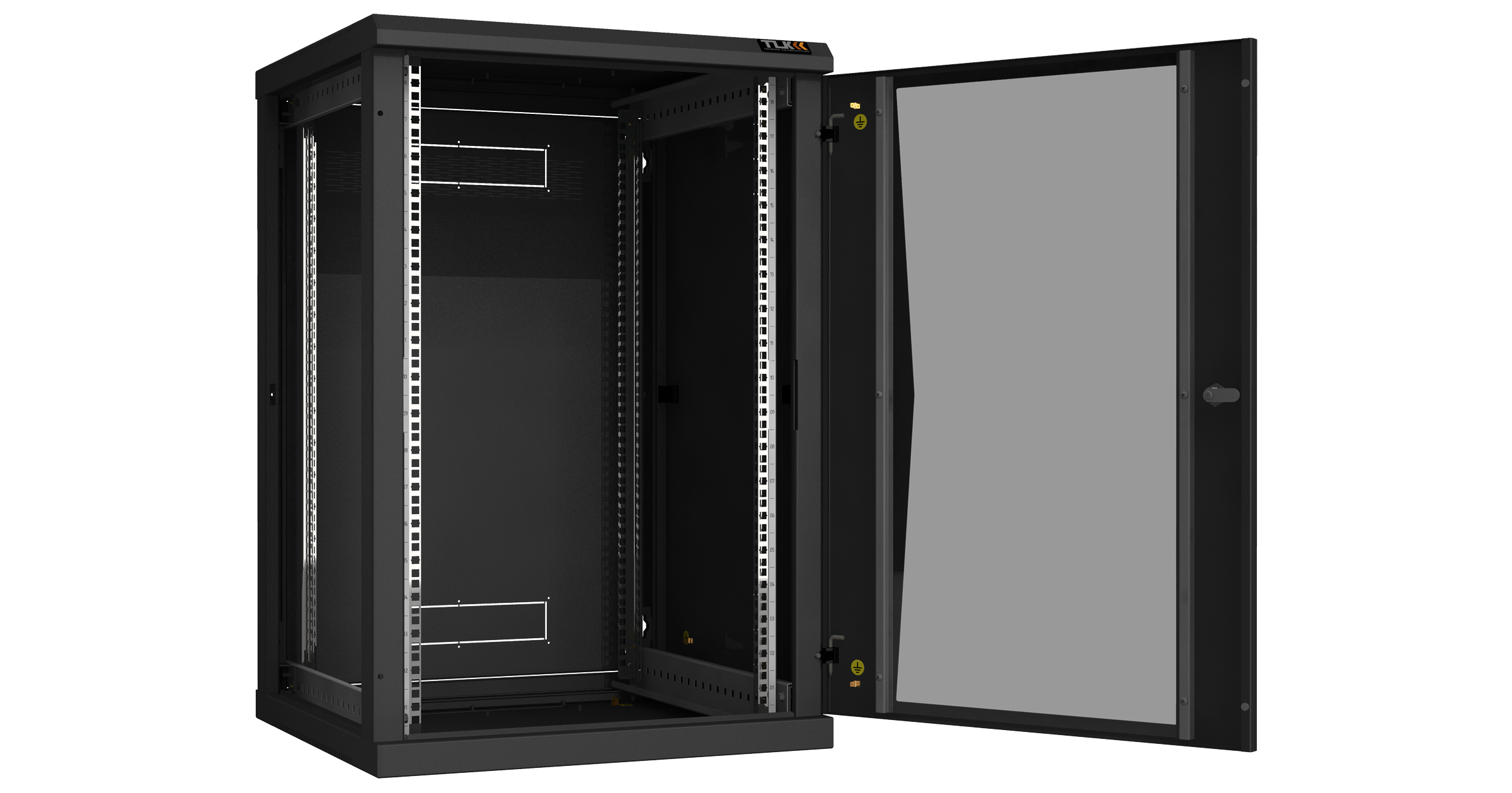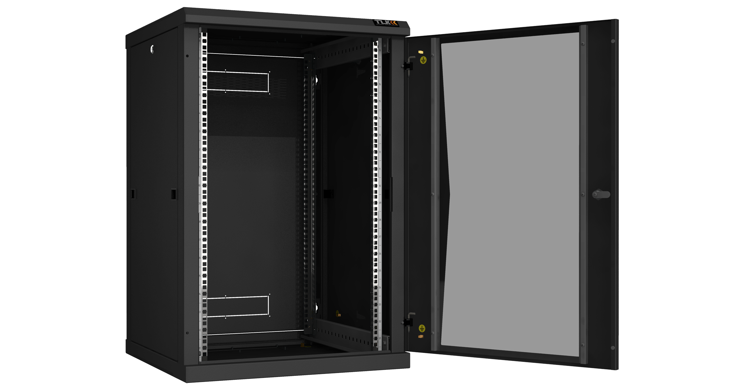 18U, Ш600хГ600, стеклянная дверь, цельнометаллические стенки, черный