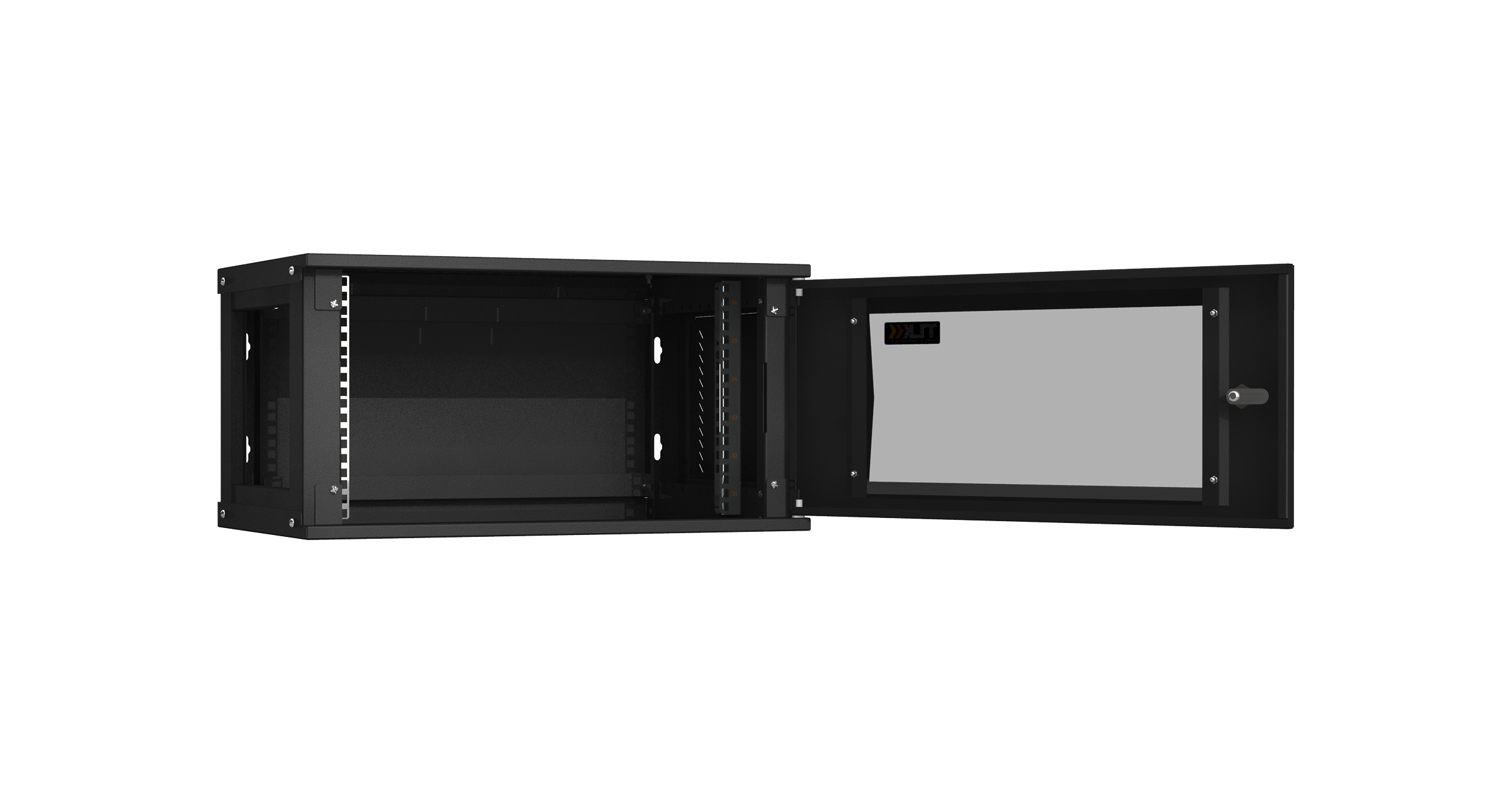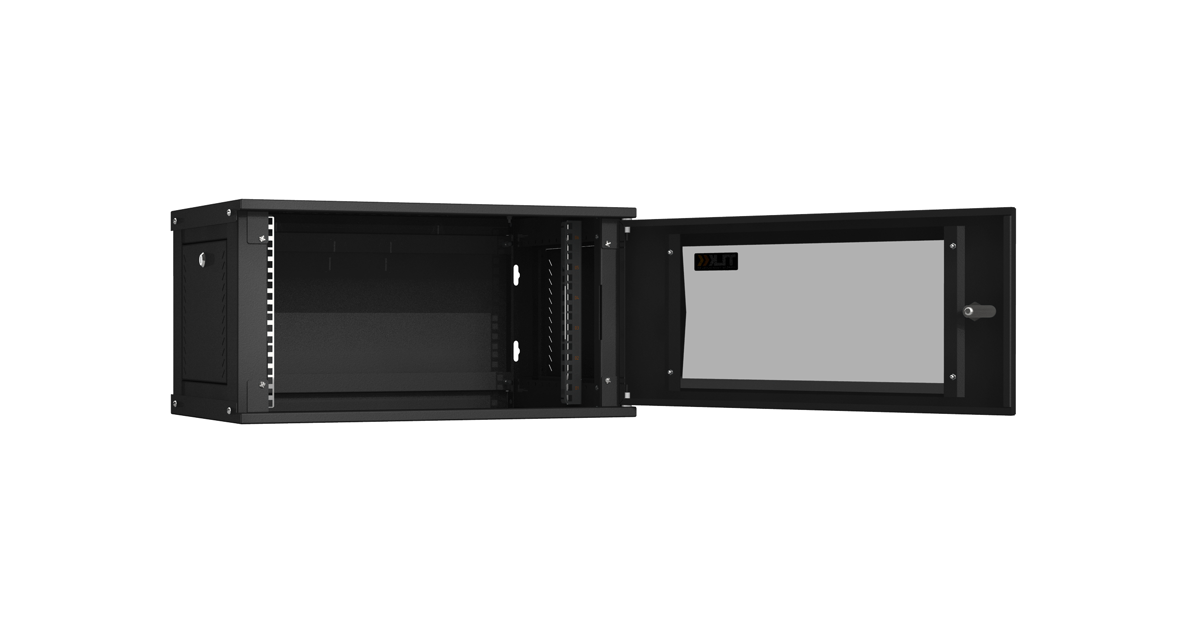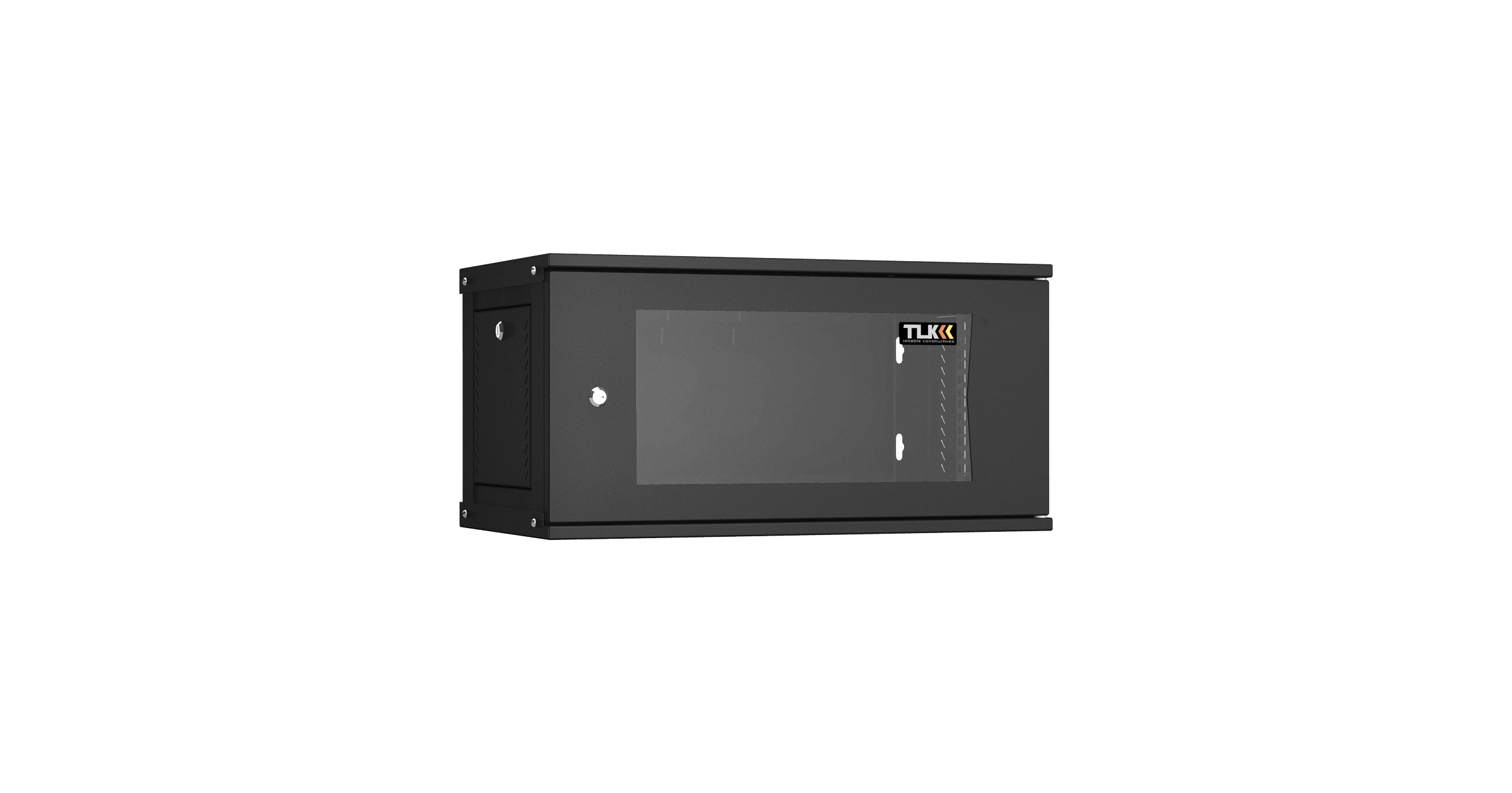 6U, Ш600хГ350, стеклянная дверь, цельнометаллические стенки, черный