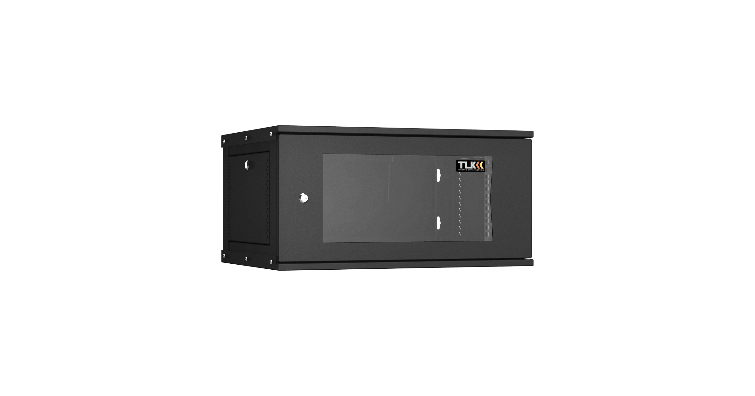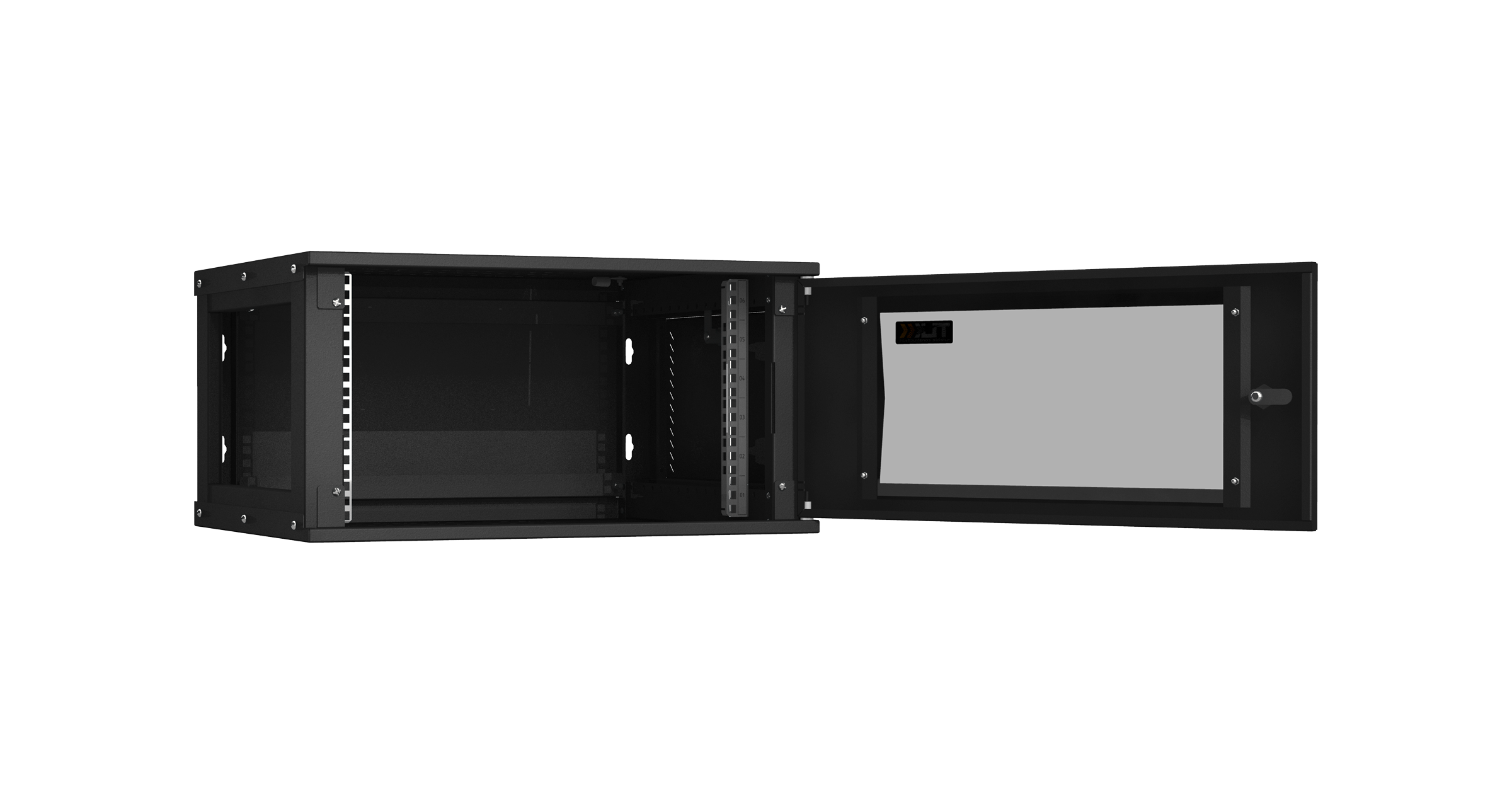 6U, Ш600хГ450, стеклянная дверь, цельнометаллические стенки, черный