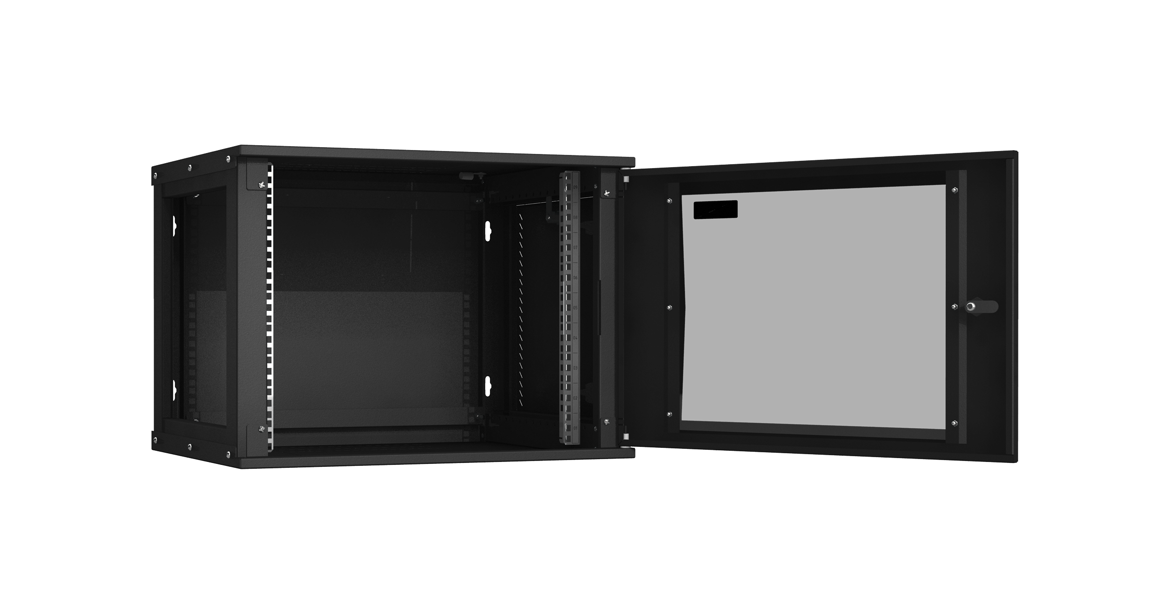9U, Ш600хГ450, стеклянная дверь, цельнометаллические стенки, черный