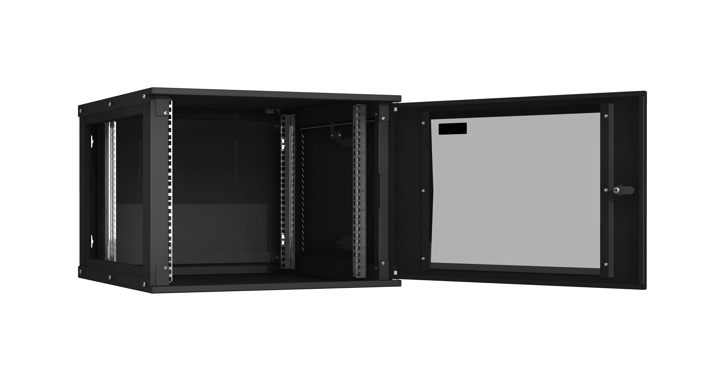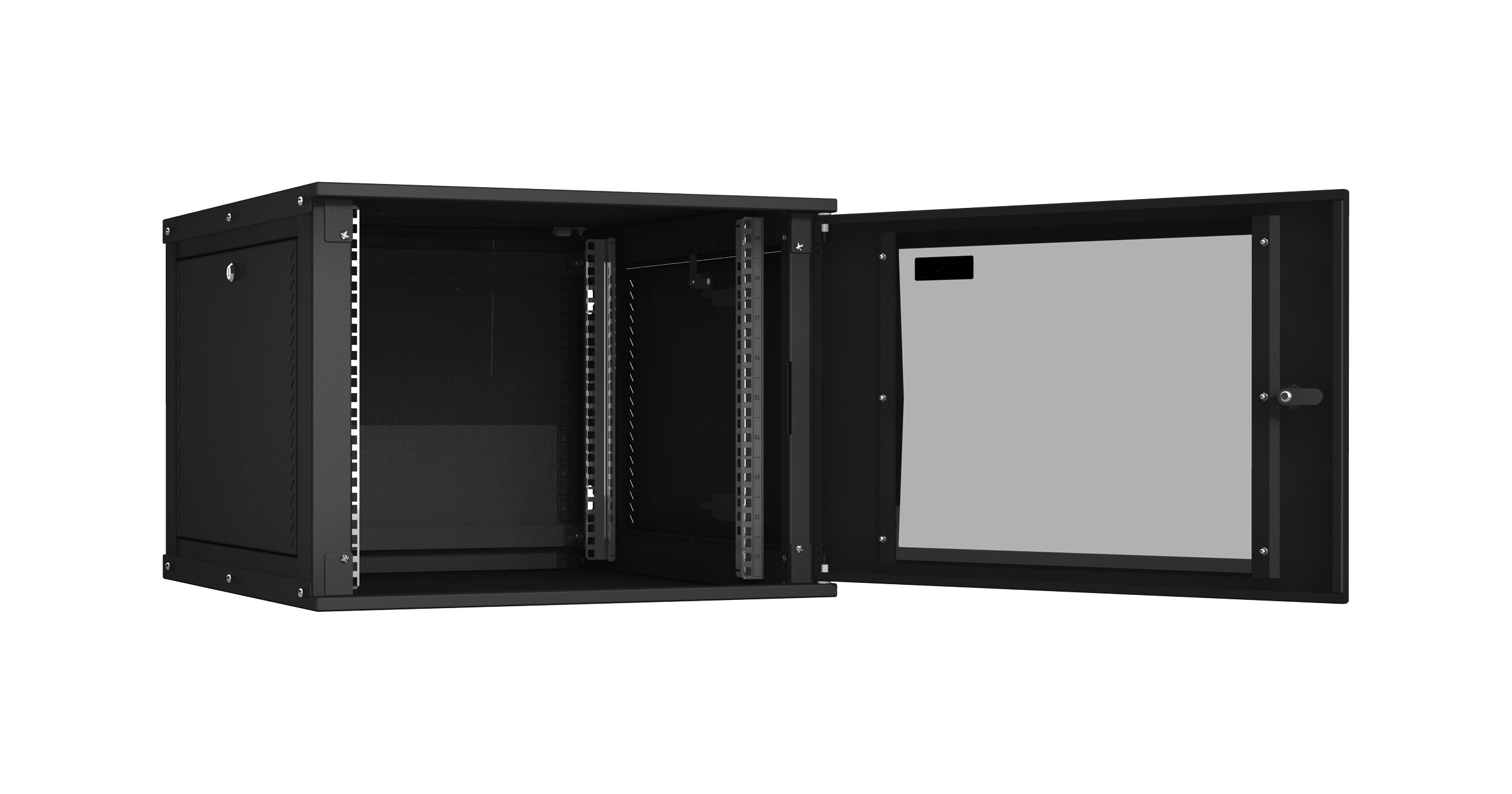 9U, Ш600хГ600, стеклянная дверь, цельнометаллические стенки, черный