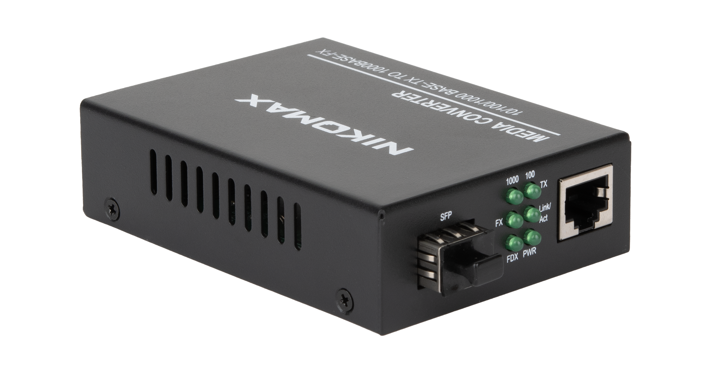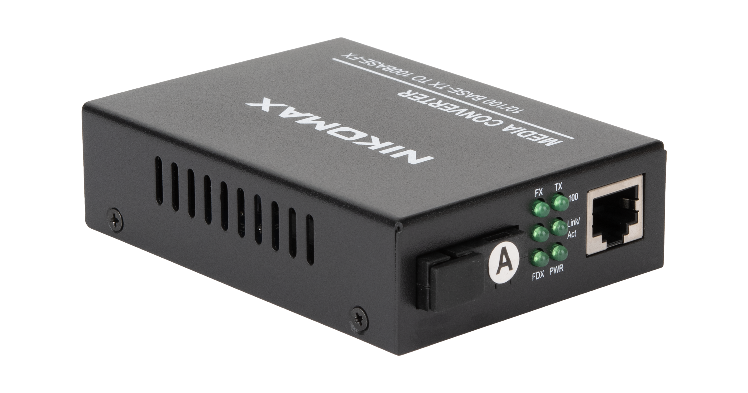Медиаконвертер преобразует электрический сигнал в оптический и наоборот. Это позволяет увеличить длину участка витой пары до сотен километров. Конвертеры могут использоваться как отдельное устройство или устанавливаться в шасси.