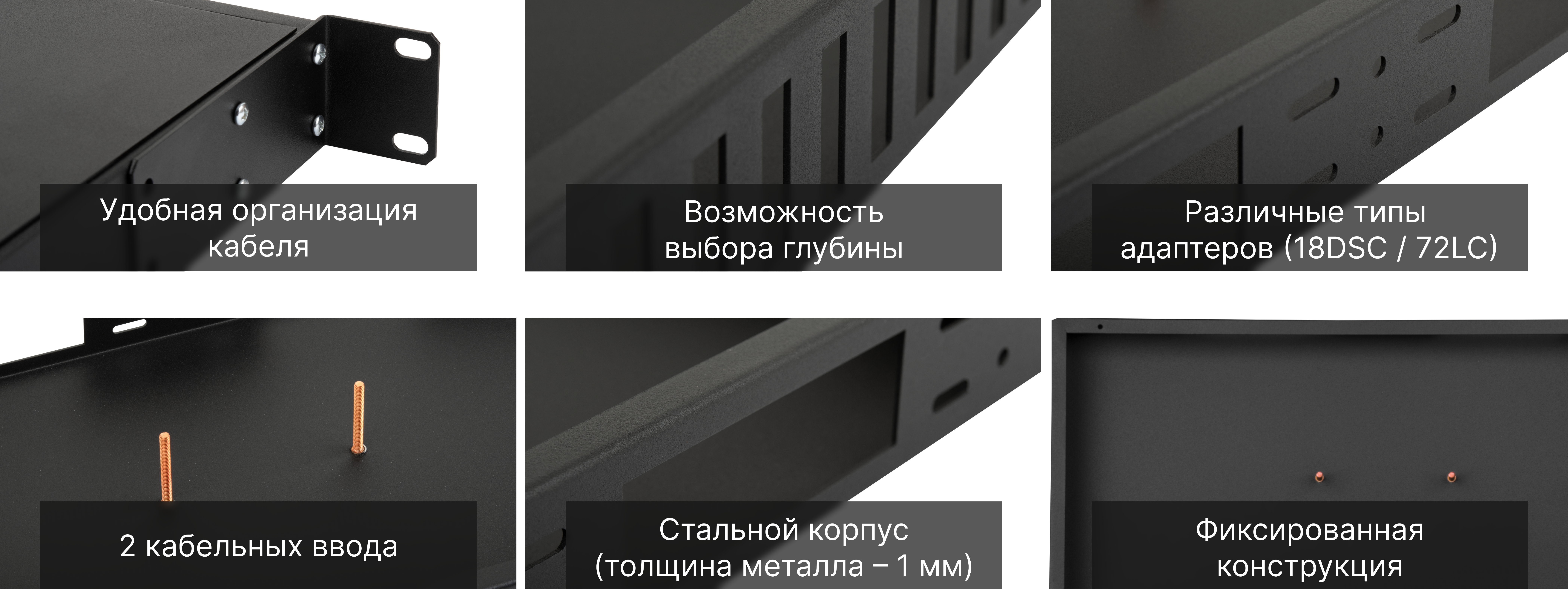 Поддержка до 18 DSC или 72 LC портов делает это устройство идеальным для использования в условиях, где требуется высокая плотность подключений.