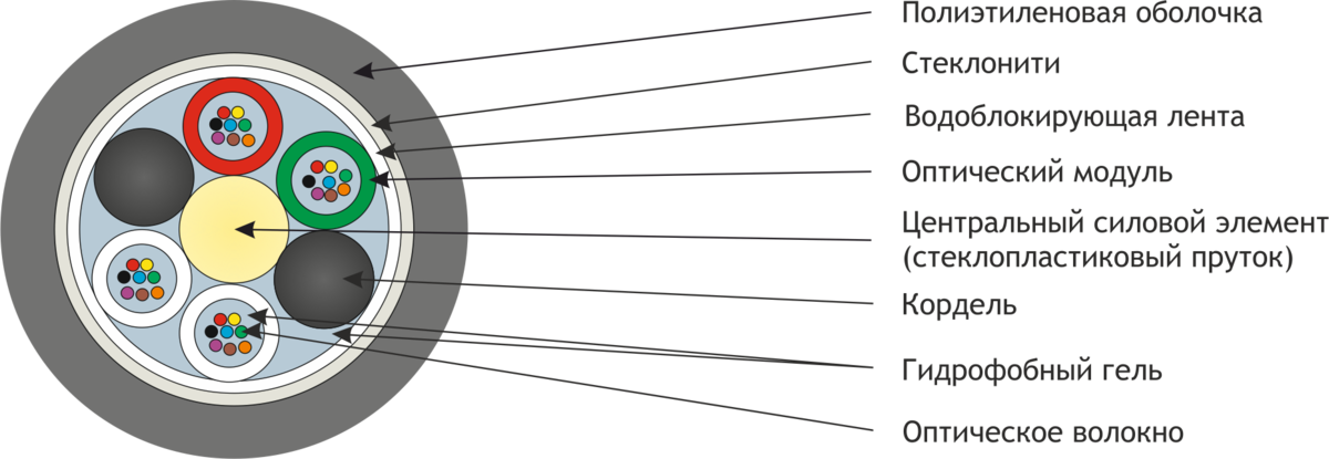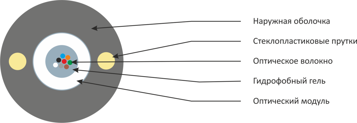 Кабель S серии содержит 6 оптических модулей со свободно уложенными волокнами. Является самонесущим, основная область применения – подвес. В качестве центрального силового элемента используется стеклопластиковый пруток. Поверх оптических модулей накладывается водоблокирующая лента и силовой элемент – стеклонити.